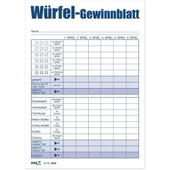 RNK Würfelspiel 5808 Würfelspiel-Gewinnblatt, Ab 8 Jahre, 2-8 Spieler, 111 Blatt, A6