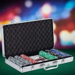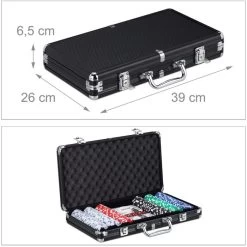 Relaxdays Pokerkoffer 300 Chips Ohne Wert, Alu-Koffer, Schwarz, Abschließbar, 2 Decks