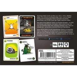 sonstiges: Die Spieler ziehen reihum Karten, bis einer ein Exploding Kitten zieht. Derjenige explodiert sofort, stirbt und scheidet aus â es sei denn, er hat eine Karte zur EntschĂ€rfung.