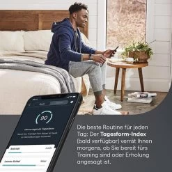 Fitness Funktionen/Anzeigen: Schrittzähler, Kalorienverbrauch, Distanz, Schlafanalyse, Inaktivitätsanzeige, Stockwerke, Hauttemperaturmessung