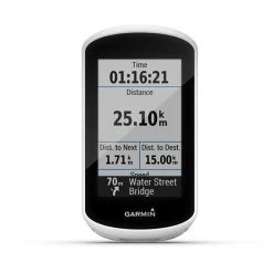 Funktionen: aktuelle Geschwindigkeit, GPS-Navigation, GPS- und GLONASS-Empfänger, Gesamtfahrzeit, Gesamtstrecke, Uhrzeit, aktuelle Höhe, Gesamthöhenmeter bergauf, maximale Höhe, aktuelle Steigung/Gefälle, Höhenmesser, Smart Notifications, Garmin TopoActive-Karte, Fahrzeit, Strecke, Uhrzeit