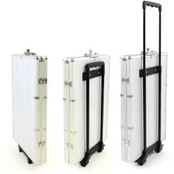 sonstiges: Pokerset im abschließbaren Koffer-Trolley aus Aluminium – durch ausziehbaren Griff und Räder leicht zu transportieren, mit Inlay, für alle herkömmlichen Pokervarianten wie beispielsweise Texas Hold’em, Omaha Hold’em, Seven Card Stud und Five Card Stud geeignet, hochwertige Laser Chips, stark reflektierend, mit Werten: rot 5, dunkelblau 10, grün 25, hellblau 50, schwarz 100, violett 500 und gelb 1000, Spielfreude auf Reisen oder bei Freunden