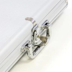 Lieferumfang: 1000x Laser Pokerchips (250x schwarz, 200x violett, je 150x grün, hellblau, gelb, je 50x rot, dunkelblau), 3x Kartendeck mit je 54 Karten, Dealer Button, Small Blind, Big Blind, 5x Würfel in rot, Spielregeln, Aluminium-Koffer mit Schlüssel (2x)
