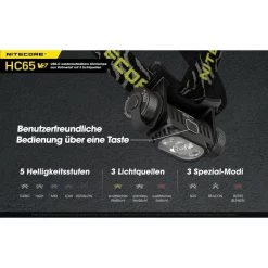 sonstiges: 5 Leuchtmodi (normal, CRI-Weißlicht, Rotlicht, rotes Blinklicht, SOS, Beacon), 5 Lichtstärken (1 lm bis 1750 lm), Schalter am Leuchtenkopf, 180° Kippmechanismus