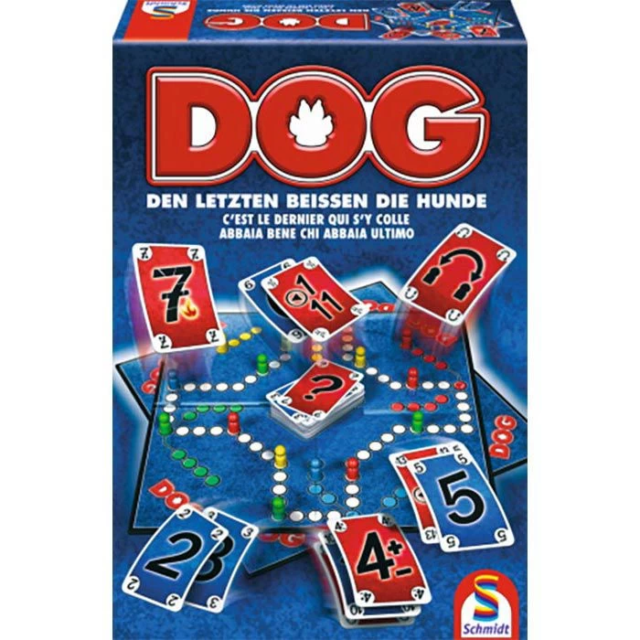 sonstiges: DOG – den letzten beißen die Hunde – ist ein Familienspiel im Stile von Mensch ärgere dich nicht! Es gilt dabei seine vier Spielsteine sicher in sein Häuschen zu bringen. Allerdings bewegt man sie mit Karten vorwärts, die so manche Überraschung parat halten können. Partnerschaftlich unterstützt man dabei auch seinen Teamkollegen. Denn den Sieg fährt man nur gemeinsam ein. Einfach spannend und ein toller Spaß!