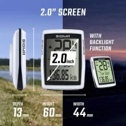 Funktionen: aktuelle Geschwindigkeit, Durchschnittsgeschwindigkeit, Vergleich aktuelle/durchschnittlichen Geschwindigkeit, Maximalgeschwindigkeit, Temperaturanzeige, Strecke, Gesamtstrecke (Rad 1/ Rad 2), Fahrzeit (Rad 1 / Rad 2), Trittfrequenz, Uhrzeit