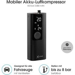 Lieferung: inkl. Schlauch fĂźr Auto-/Motorradreifen, Ballventil, Fahrradventil, Mundventil, USB-Ladekabel, Transporttasche